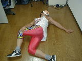 ・ハードルを飛んでいるような格好をすると自然とももが伸びる。