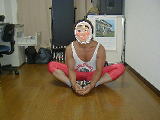 ・右写真は足を組んで行ったもので、こちらの方が効果が大きい。