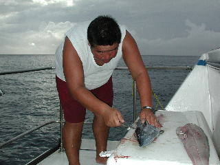 ダイビングを終えた我々が、狭い船の上ですることと言えば、釣りの他には思いつかない。
