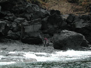 波に洗われた岩はよくすべるようで、気をつけて歩いていたはずが何度もこけそうになり、とうとう尻餅をついた。