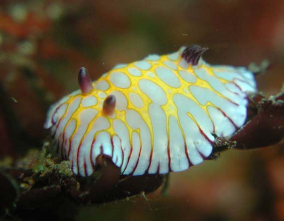 ボブサンウミウシという名前。名前の由来は「ボブ」はボブ・ローランド博士らしいのですが「サン」は何でしょうか?珍しいウミウシだそうです。 ウミウシは一期一会が多いのが寂しいが、出会ったときの感動も大きい。