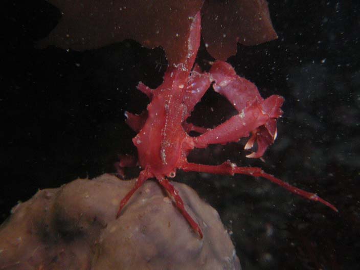 コノハガニでよろしいでしょうか?海藻をくっつけています。映画の「レギオン」みたいなフォルムがまたまた好きです。