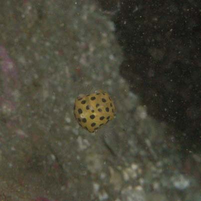 ミナミハコフグの幼魚。1cm位かなぁ、右側は後ろ向きです。海中も夏が到来したようです。