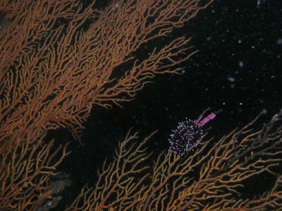 黒っぽく写ってしるのがスミゾメミノウミウシ。卵も見えます。