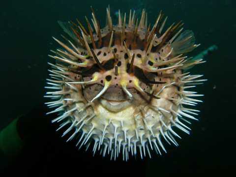 ハリセンボン。実はガイドさんに尻尾、持ってもらっています。