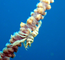 ムチカラマツエビ せかせかと歩いていました。画像を加工したので背景の青色が嘘っぽいです。
