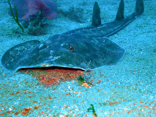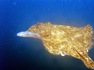 コモンカスベ 網にかかったのを逃がしたのですが、弱ったせいか海底でなく荒れた海面直下を泳いでいきました。