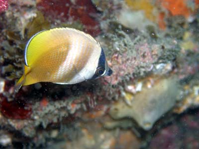 ミゾレチョウチョウウオ幼魚 松根にもいましたがカロウ根の方が出会うチャンスが多いような。