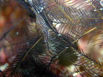 カゲロウカクレエビ 松根の上にもいました。大きさもそこそこあって、とてもきれいなのですがとても撮りにくい。ホントきれいなのにね。