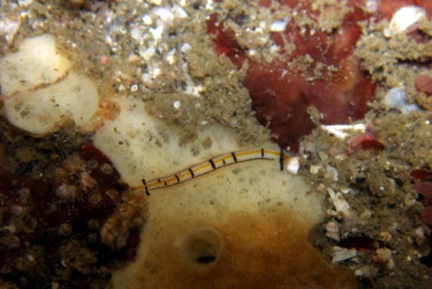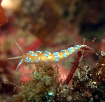 フジエラミノウミウシ 上のKが見つけた翌日に、もう1ついました。6mmくらいで拡大してみないとなんだかわかりません。
