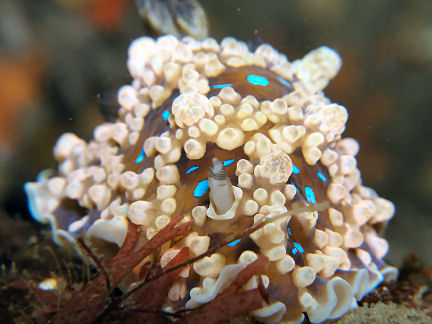 ミヤコウミウシ 前にも書いたかも知れませんが青い斑紋が意外にきれいです。
