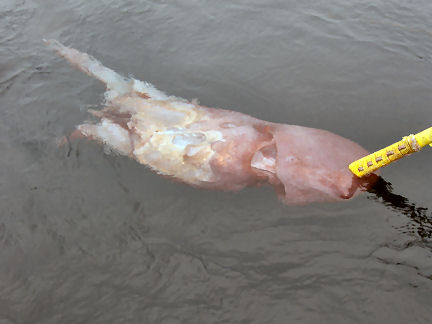 タイヤ漁礁近くの水面で巨大なタコ?の死骸を見ました。