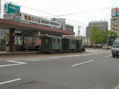 左からJR松山駅・坊ちゃん列車・宇和島駅