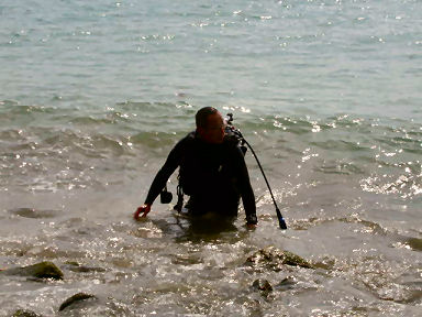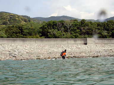オートキャンプ場の向かい側のビーチからまずエントリー。