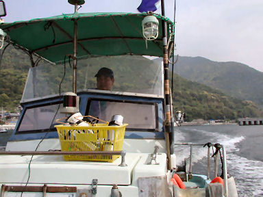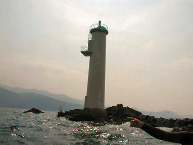2日目はボートダイビング。どこに行こうか相談し、赤碆(アカバエ)という灯台が建っている沖の岩場へ。