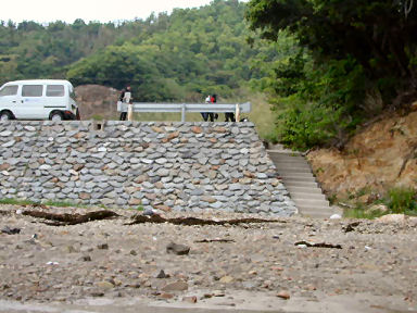 続いて、塩子島の南に船を留めて、東側を探ります。
