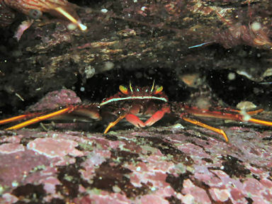 トゲアシガニ 右上の怪しい青い線は魚だったかも・・・・・・。