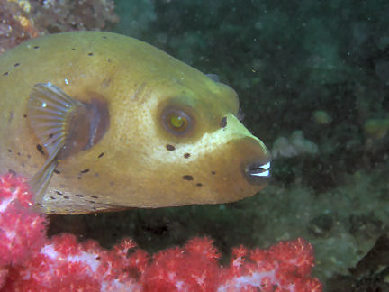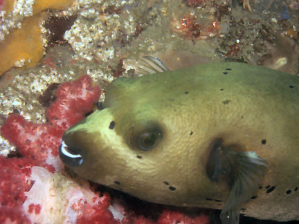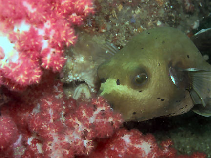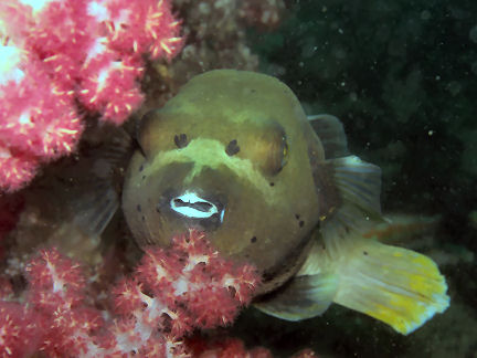 ひょっとこさんから「急ぎばたらきみたいな潜水」と言われてしまいました。午後ばたばたとやってきてそそくさと帰ってしまう。気軽といえば気軽ですが、ちょっと良くない潜り方ですね。 ところで。 メバル岩で「コクテンフグ」を見つけてしまいました。南の海ではよく見かけますが関東では大変稀らしいです。フーッフーッ、興奮して鼻息が荒いです。