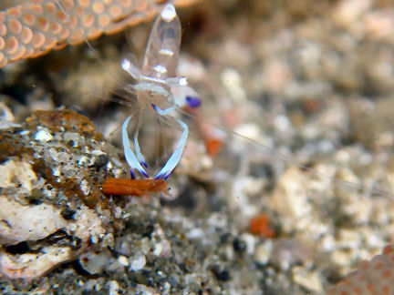 オドリカクレエビ 茶色のものを食べていました。ポッキー??