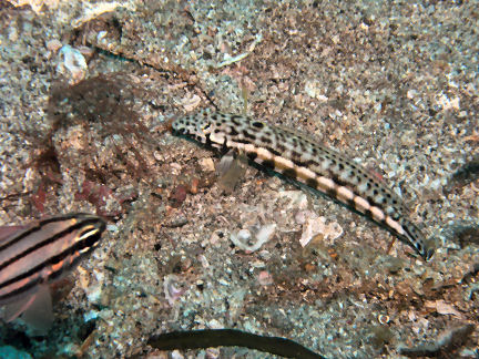 マハタ幼魚 上のウツボの周りをチョロチョロしていたのがこの幼魚。食べられちゃうかとハラハラしました。
