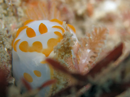 キイボキヌハダウミウシ 可笑しな顔ときれいな色ですが、ウミウシを食べるウミウシです。