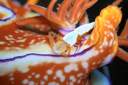 ウミウシカクレエビ 前回の個体より大きくて撮り易かったです。Booさんに教えてもらいました、感謝です。