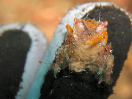 ワタクズガニの仲間 海底でなにか動きました。→爪先くらいの大きさ(グローブが汚いとかは置いといて)。→