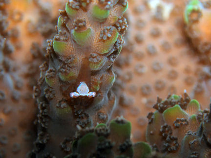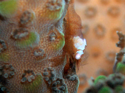 オシャレカクレエビ 左は寄りすぎ、右は離れすぎ。