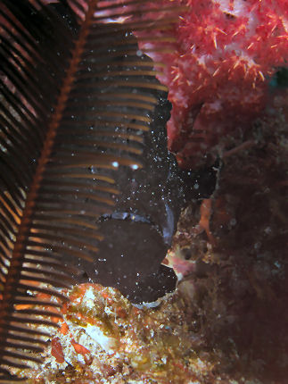 オオモンカエルアンコウ タイヤ漁礁。 N先生と久しぶりにタイヤ漁礁へ行く途中で。ウミシダを御簾のようにしてこちらを見ているような感じを狙ったのですが、うまくいかないなあ。