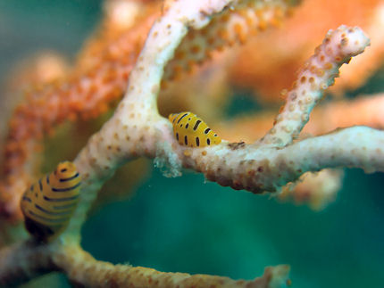 トラフケボリ 2匹のうち右はまだ小さい個体。もう一枚は赤いヤギに着いていて美しい。殻が欲しい。