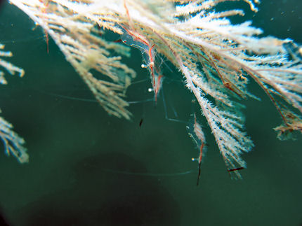 アカスジカクレエビ いっぱいいます。意外に鋏脚が長くて黒いです。