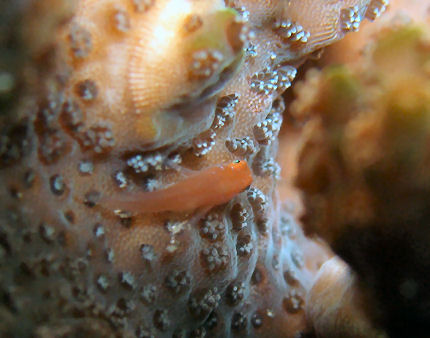 ホソジマモシオエビSP 別のエダミドリイシで。画像を確認したところ抱卵中で改めて生物の生命力に感動しました。