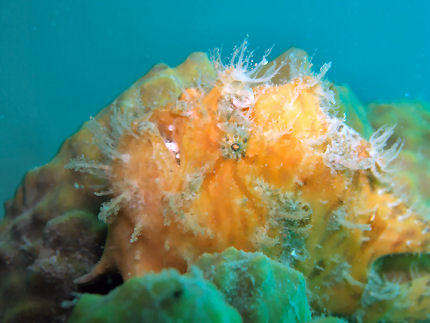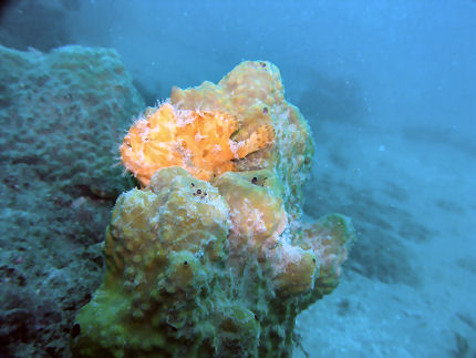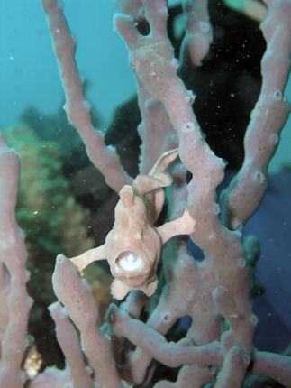オオモンカエルアンコウ 山ちゃんが教えてくれました。不安定な場所なのに退屈なのかアクビしていました。