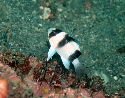 ミスジスズメダイ幼魚 こちらも久しぶりの登場です。逃げない子で割合近づけました。