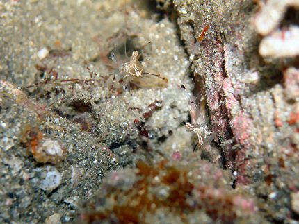 オシャレカクレエビ わかりにくいですが2匹います。体を揺すっていました。