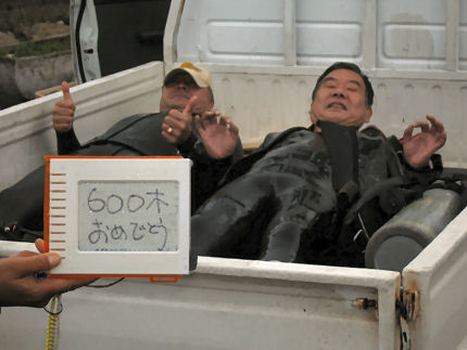 クマドリカエルアンコウ クマドリ君はアイドルですね。右はゾンビみたいですが600本記念&発見者のBOOさん(右)です。おめでとうございます。
