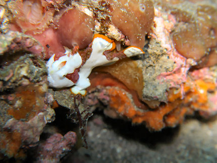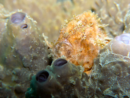 船に戻ったところでMarkさんが手招きしています、指差した先にはクマドリカエルアンコウです。私が戻ってくるまで待っていてくれたそうで大感謝。