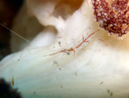オシャレカクレエビ 例年は2、3見られればいいエビですが今年はいっぱい。普通は穴や岩と砂の境目に多いのですがこれはスナイソギンチャクについていました。