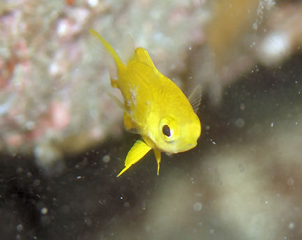フタスジリュウキュウスズメダイ幼魚 先週マナティーズの山ちゃんが見つけました、ありがとう。