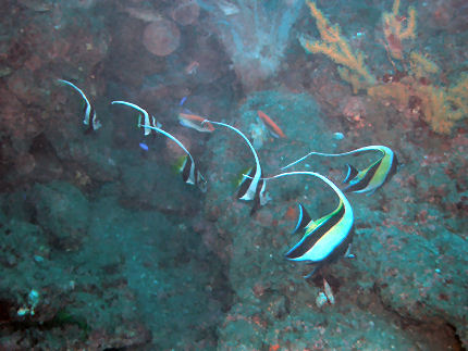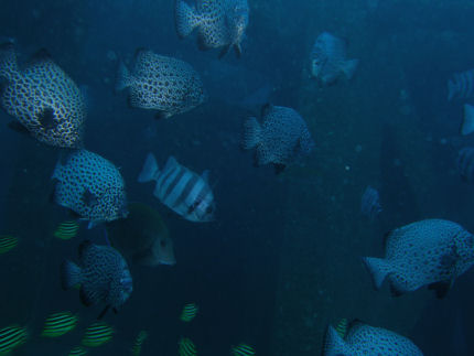 相変わらずイシガキダイ、イシダイ、コショウダイがわらわらと迎えてくれるが探し物のハクセンアカホシは見当たらず。イワシが低く銀河のように流れています。