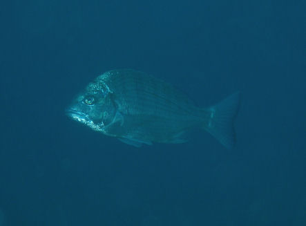 クロダイ ミノ漁礁で。警戒心が強いのでなかなか寄れない。