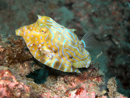 シマウミスズメ アカホシカクレエビにクリーニグされてうっとり。あぁそこそこ、もっともんで〜。