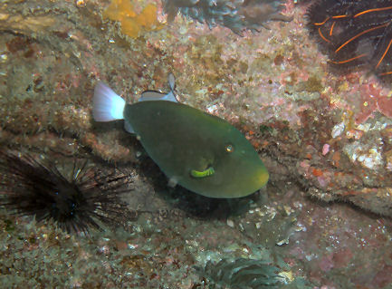 カロウ根ではスミツキベラ幼魚、クロモンガラ。アカヒトデには「あれ」がかじったような跡も見つけました・