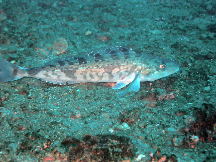 アイナメ 岩礁帯を好む種なのになぜか砂地で。尾が切れてしまった。