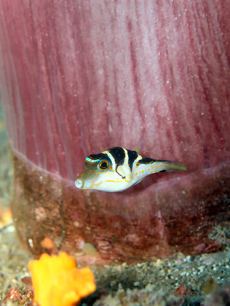 ハナキンチャクフグ幼魚 松根にいました。今、この小ささでは越冬は無理でしょうか。もののあわれを誘う一期一会です。