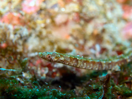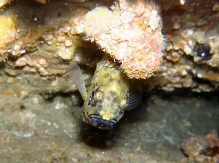 松根に戻ってゆっくり探索して、ホソウミヤッコ、ハナキンチャクフグ幼魚、イソギンチャクエビ。岩陰ではオルトマンワラエビが多く眼につきます。The