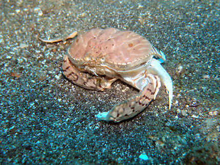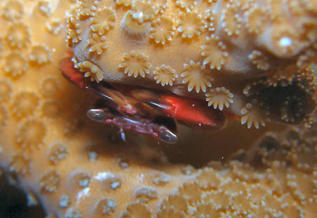 サンゴガニ フタスジリュウキュウスズメダイのいたサンゴで撮りました。