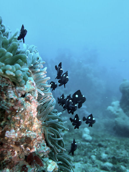 ミツボシクロスズメダイ幼魚 こちらも1月末にはいなくなってしまうのでしょう。
