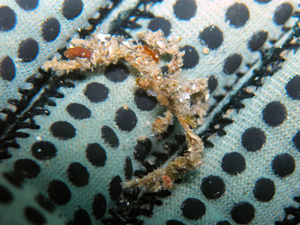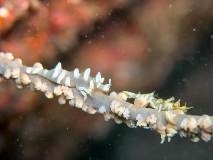 ビシャモンエビペア このムチカラマツについた2代目のビシャモンエビです。15mくらいの浅い場所で、船からも近い。