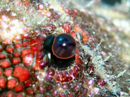 ゾウリエビの眼 ヒメセミエビを大きくしたような美味しそうなエビです。全身はピンボケでNG。